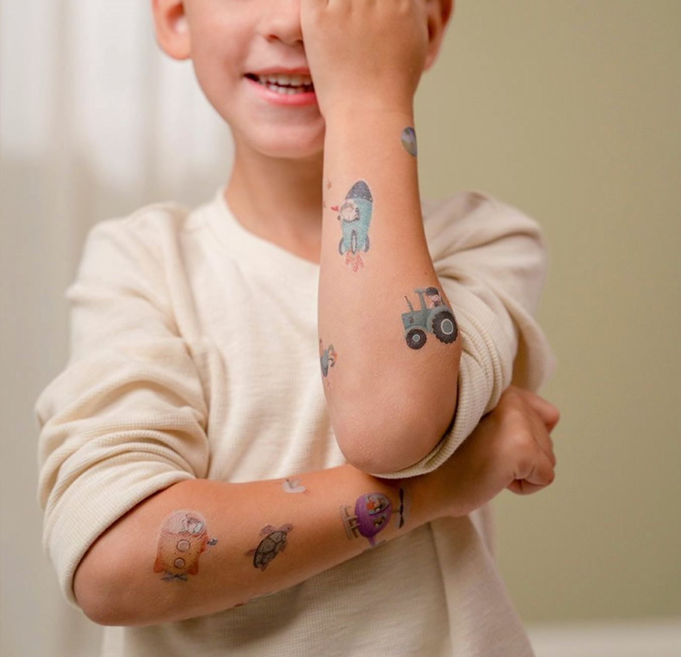 Die Tattoos "Jim & Friends" von Little Dutch zaubern ein Lächeln auf jedes Kindergesicht! Mit niedlichen Motiven aus der Little Dutch-Welt sind sie kinderleicht aufzutragen und sorgen für jede Menge Spaß. Hautfreundlich und sicher – perfekt als Mitbringsel oder kleine Überraschung!